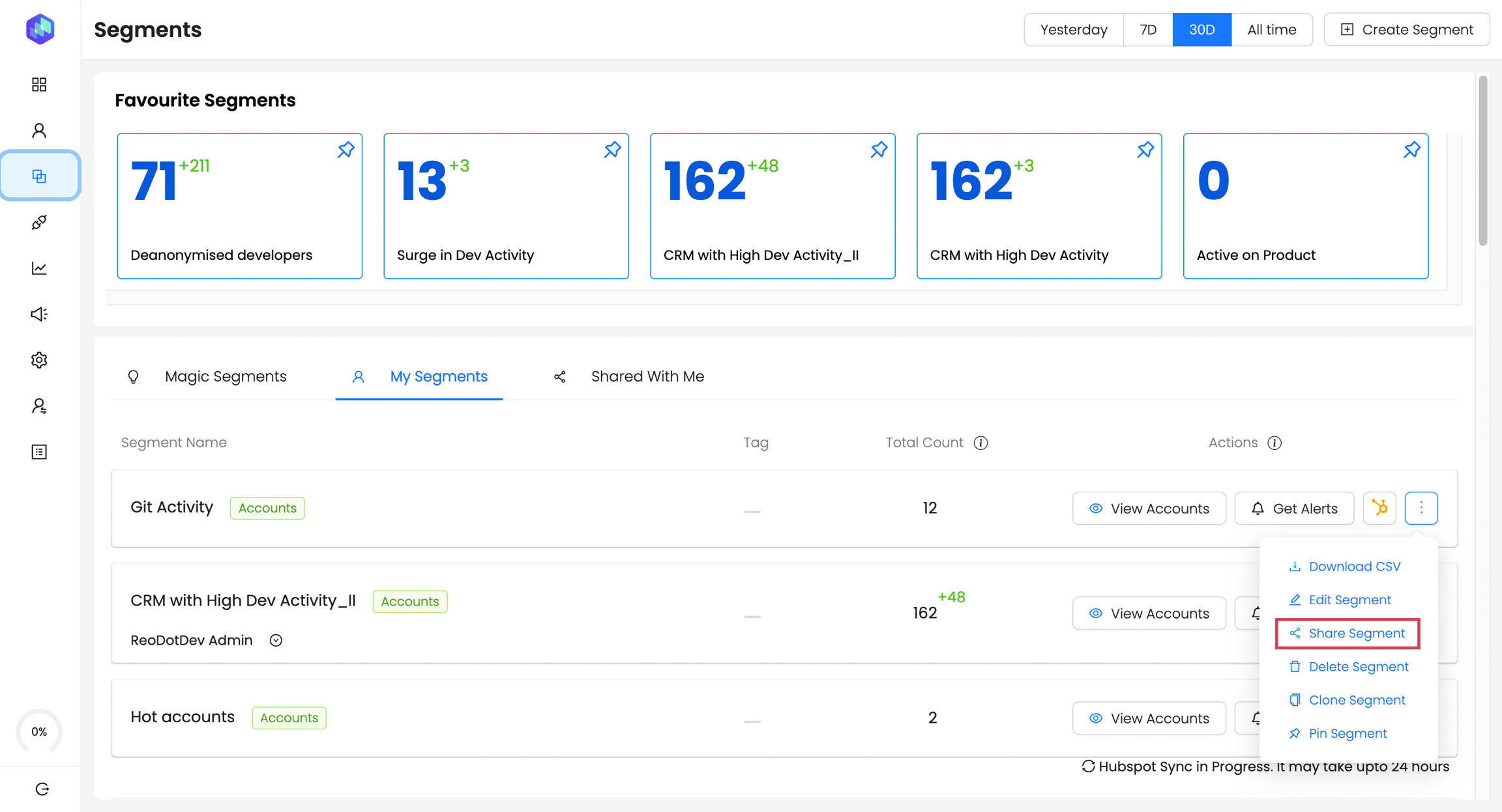 Step 1: Click on Share Segment next to the segment you want to share.