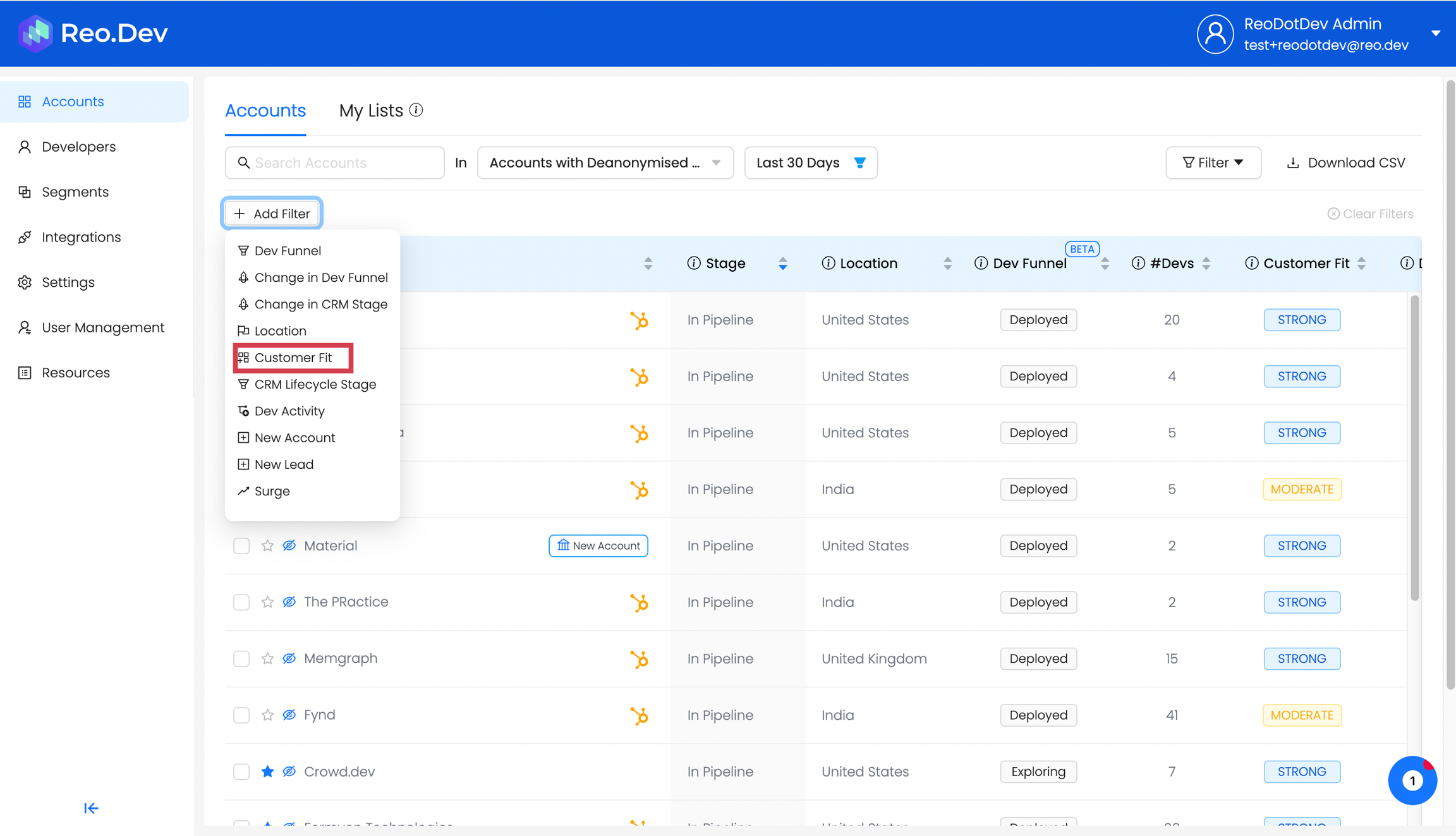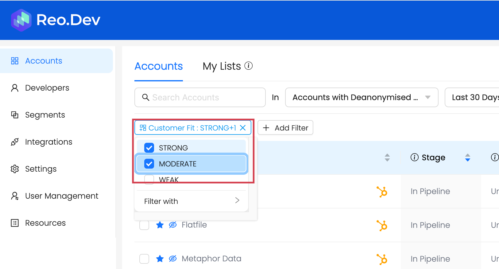 The account list is then be filtered according to the customer fit and the technographic and firmographic criteria.