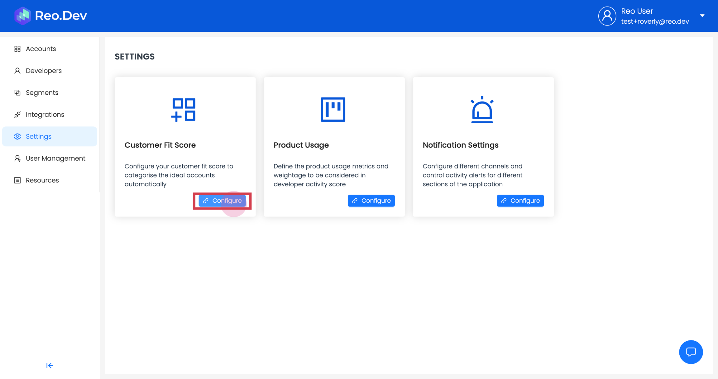 Step 2: Click on Configure under the Customer Fit Scorecard.
