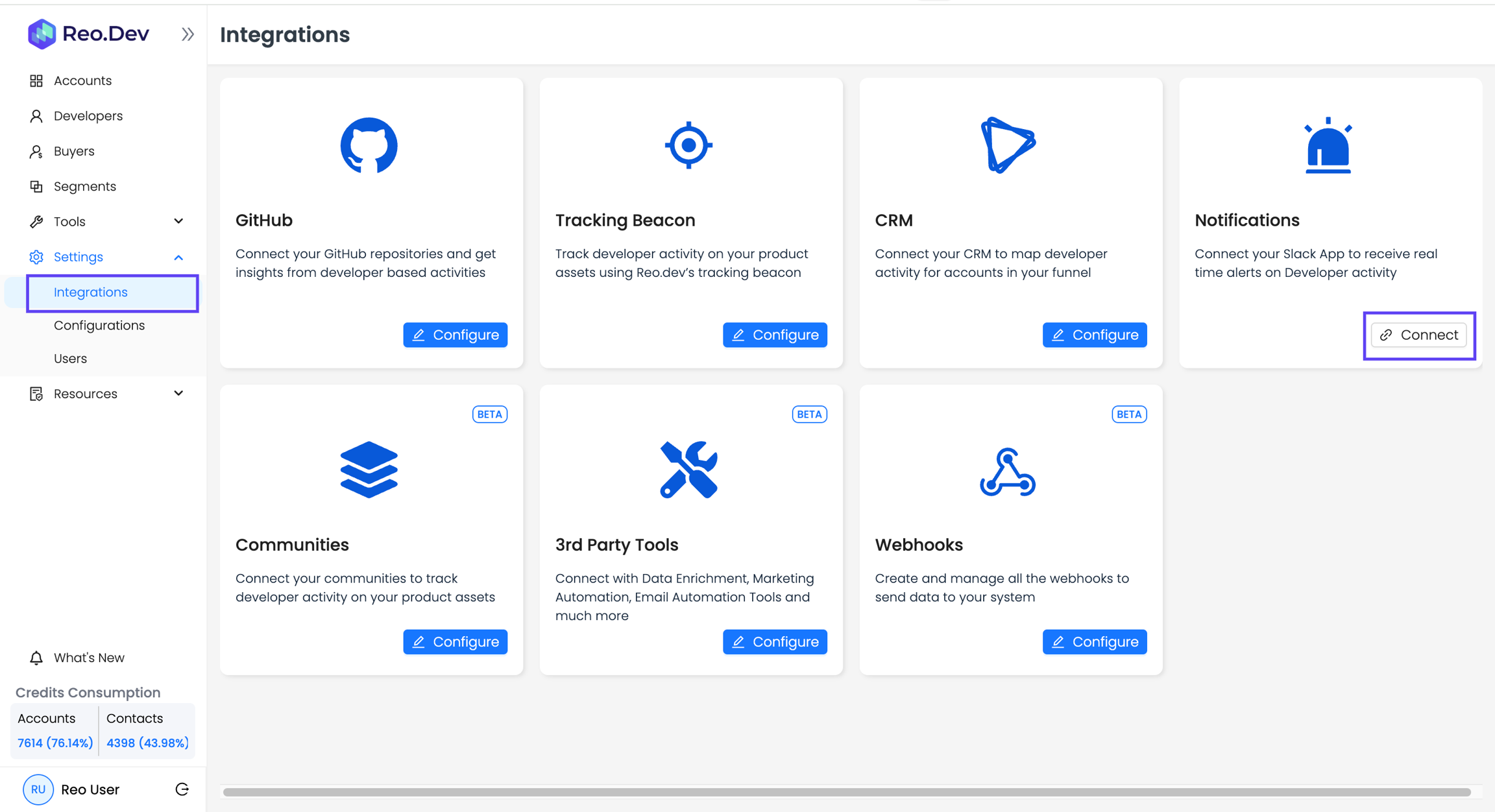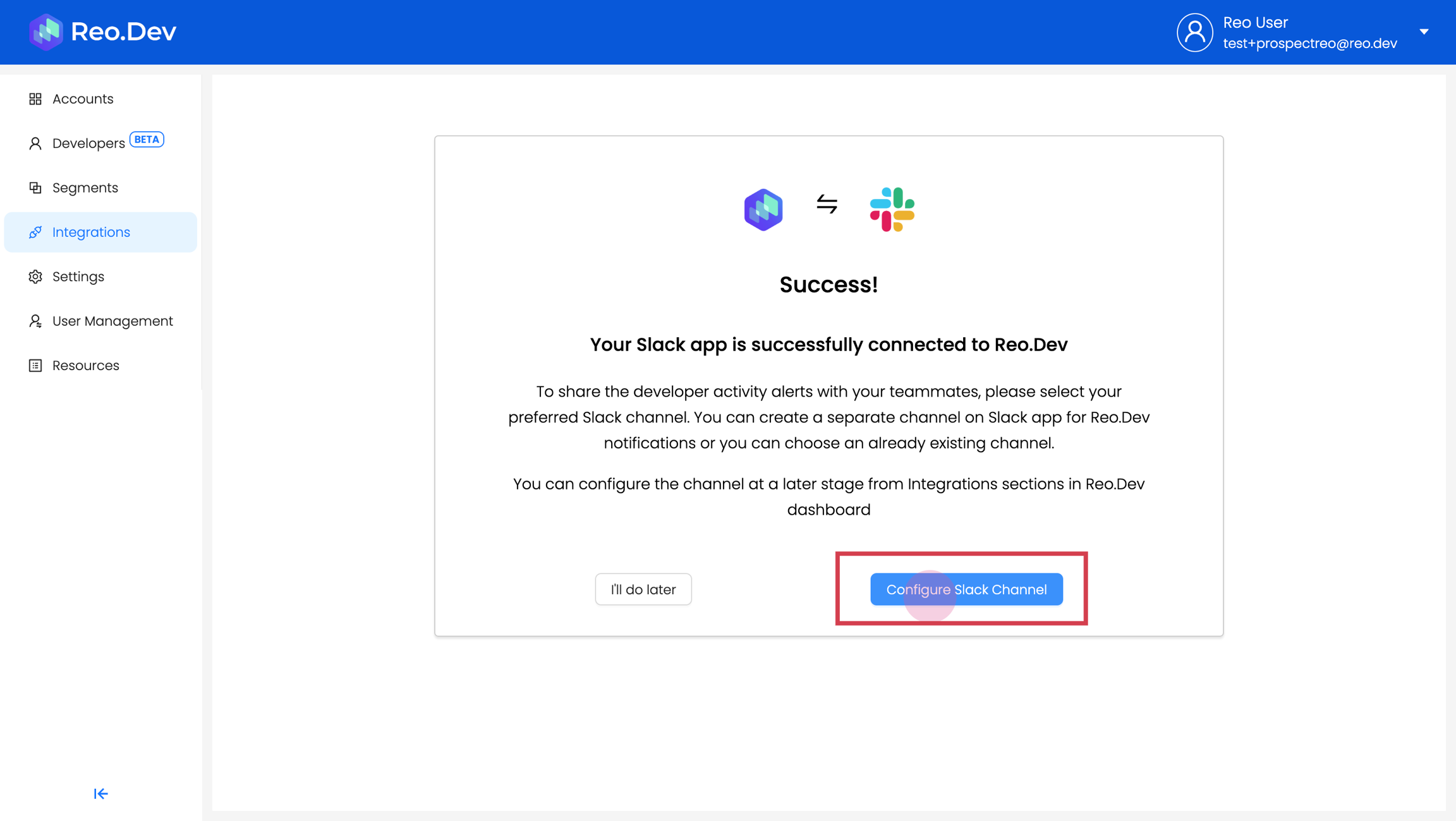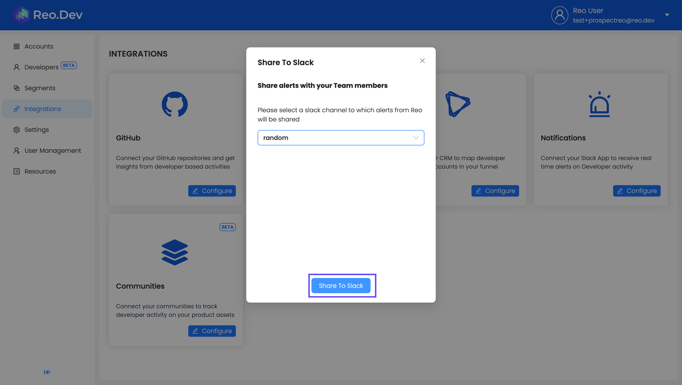 Step 1: Connect Slack to Reo.Dev