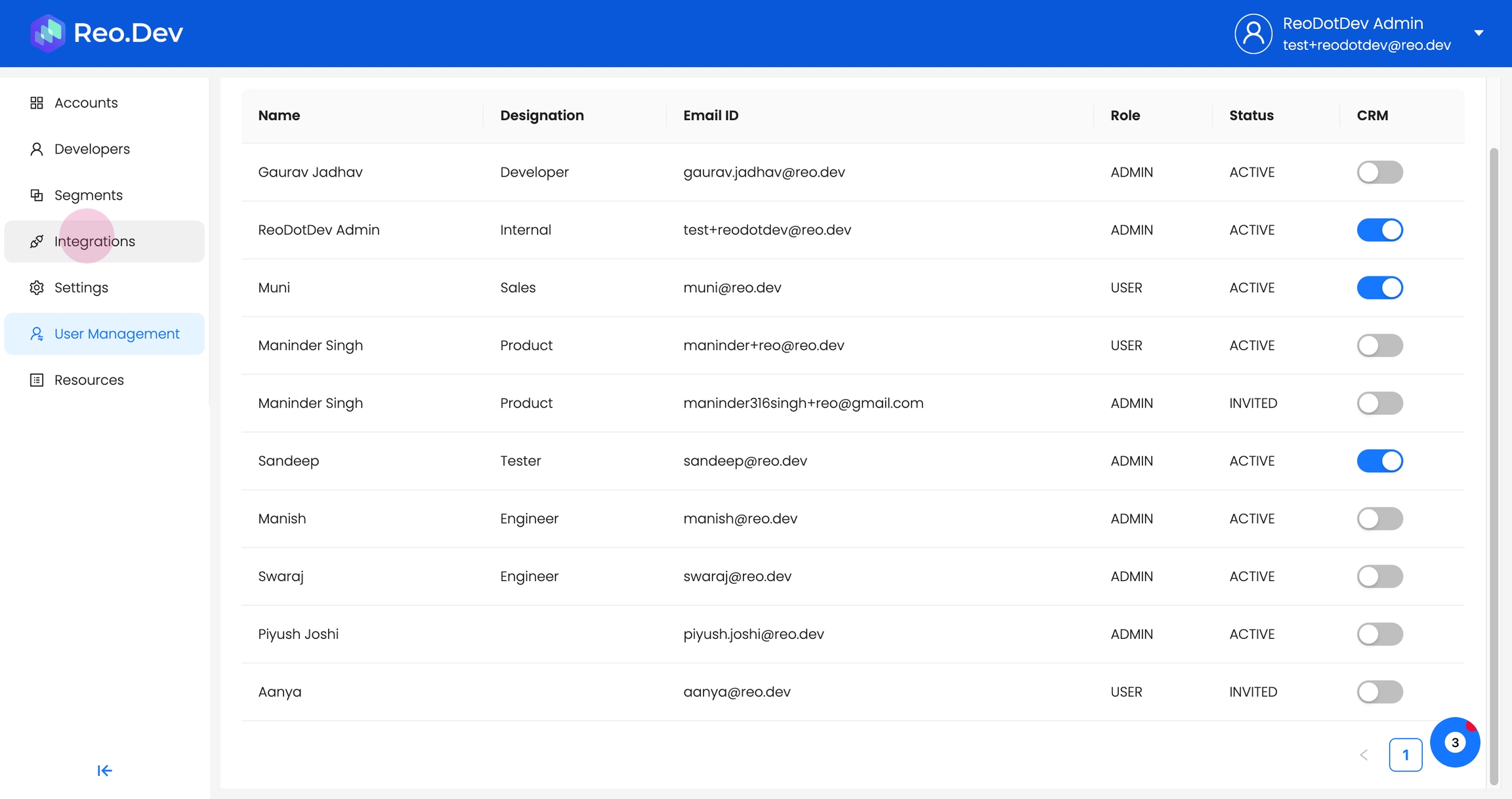 Step 2: Under the CRM column, view the teammates who have permissions to send data in the CRM.